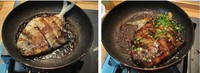 6.炒锅注少许油烧热,将蒸鱼盘里的蒸鱼汁倒进锅里,再放入适量蒸鱼豉油,烧开后均匀地浇在鱼身上即可