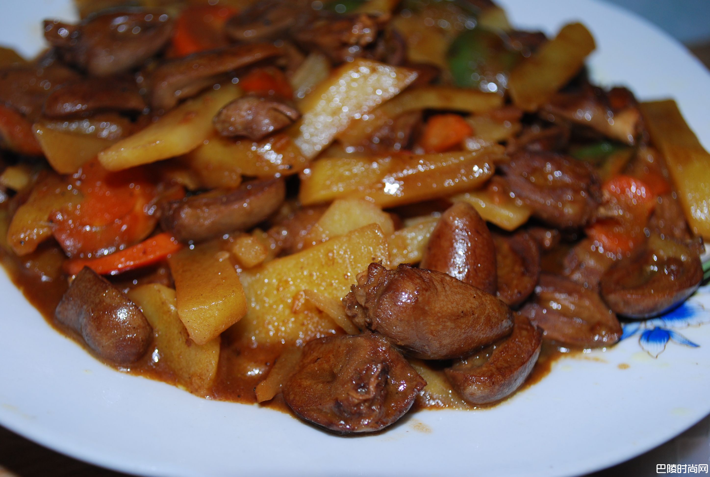 烧鸡心鸡心,土豆,豆瓣酱,青椒