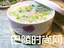 4.用锅粥的余温将香芹的味道焗出。然后出锅时撒上熟芝麻食用。由于香芹的味道很重,可不放香葱。