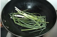 3.炒锅内放油(鸭肉本身会出很多油,油放少一点),将油烧热,放入花椒和蒜片、姜丝炒香