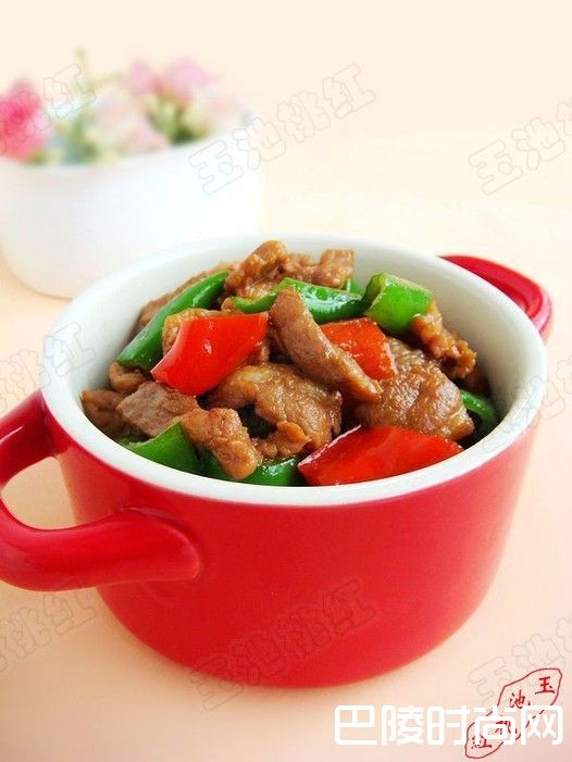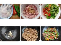 5.待鸭肉炒至8、9成熟,放入青椒,翻炒均匀至菜断生,然后放盐调味后,即可出锅。