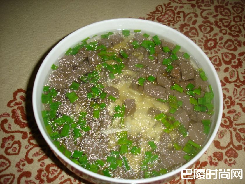 鸭血豆腐汤鸭血一块,豆腐一块,适量的大蒜叶。