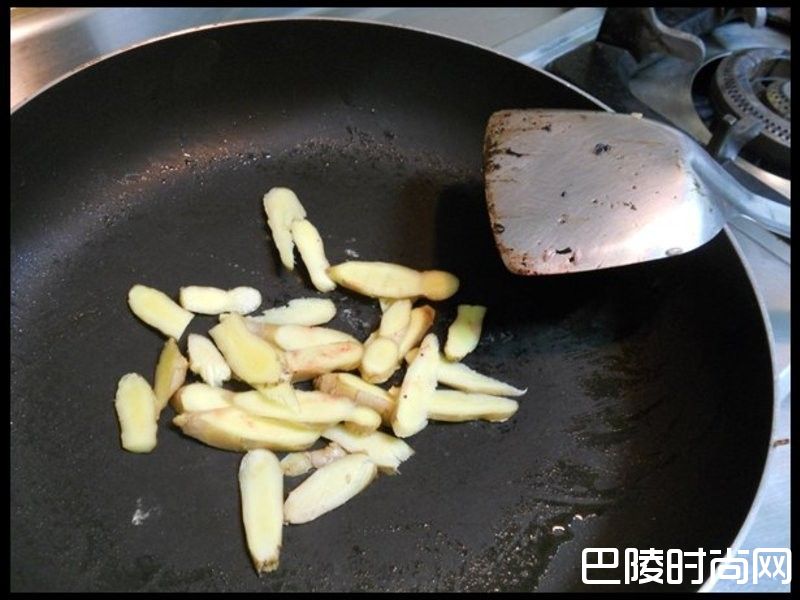 3先把生鸭血放进锅底,用小火煎过,时间不需要久,大概煎一下就好。