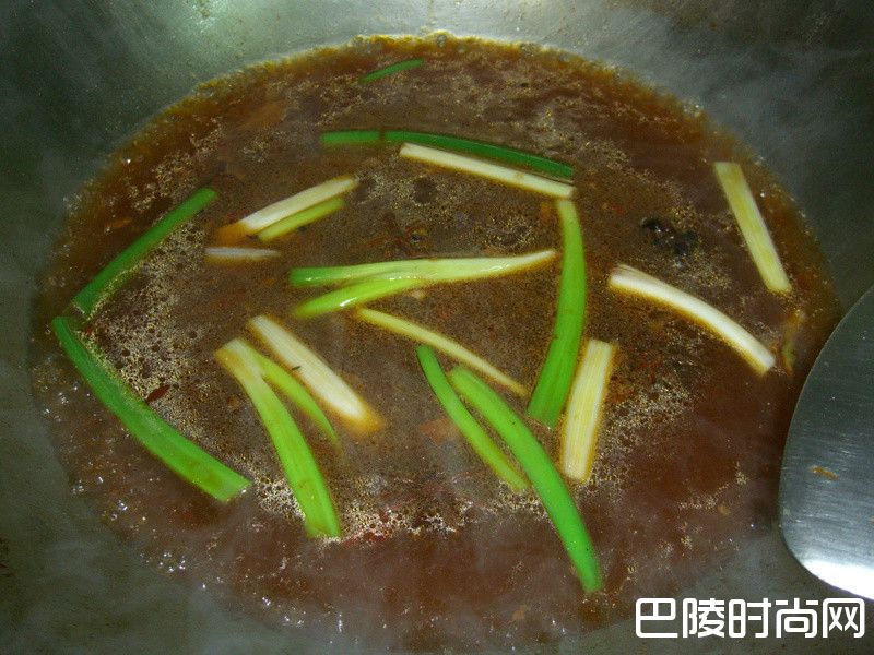 3步骤3在锅中放入些许的油冷油放入花椒粒小火慢慢煸香 ,香 味出来后将花椒粒捞出,放入姜片.蒜头.八角辣椒煸炒后入些许香油 提香,放入2大匙的辣豆瓣酱2大匙的{大吟酿薄盐酱油}炒香,加入些许米酒适量的水煮滚后转小火炖15-20分钟