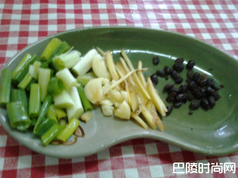 2葱、姜、蒜头黑豆豉洗净切好备用。