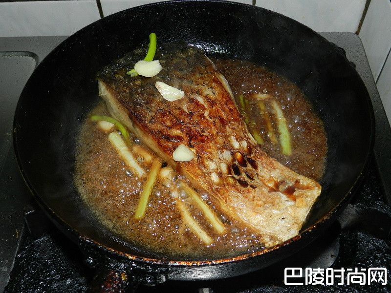 2加入辛香料与酱料下锅煮,慢慢收干酱汁,如果鱼肉还不熟的话,可以再加一些水下去煮