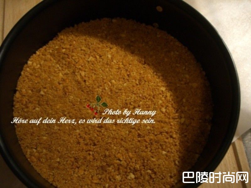1蛋糕底 饼干放在塑胶袋中碾或敲碎,然后把碎掉的饼干与无盐奶油与砂糖在锅子里加热搅拌成糊状