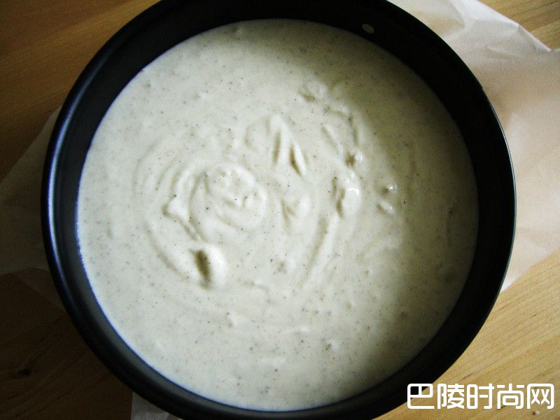 2用汤匙把饼干糊铺在蛋糕模中(模直径约26cm)