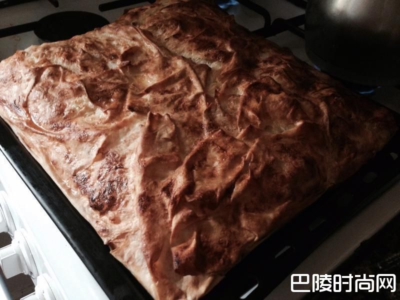7将烤盘送入预热好的烤箱200度,中下层,30到35分钟,直到表面膨胀成一个半球状如图。这个博瑞克外表酥脆可口,里面层次分明,奶酪香浓。