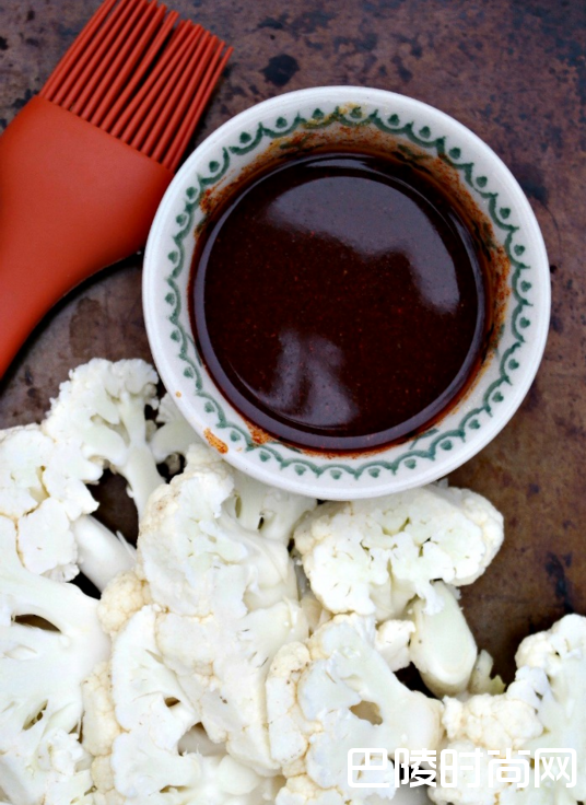 2将花椰菜片放在烤盘上并刷上油,烤10分钟。翻转刷上剩余油,并继续烤10分钟。从烤箱中取出晾凉。