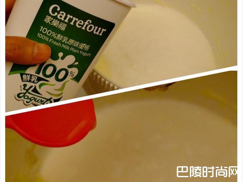 2加入家乐福鲜乳原味优格、柠檬汁以电动搅拌机搅拌均匀