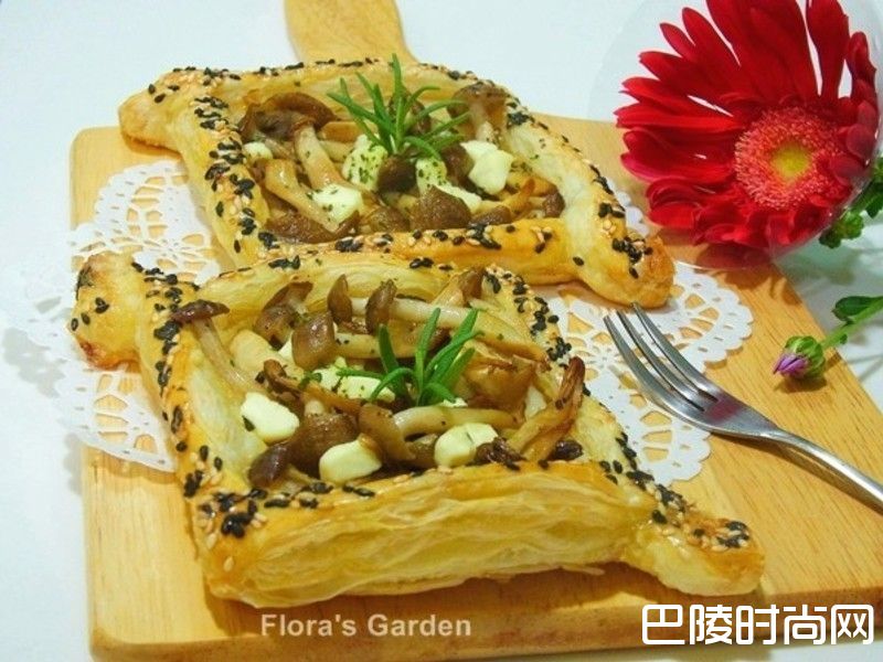 13顶端插进十字架,摆一小支百里香,奶酪蛋糕冢即完成,旁边再挤上奶油霜