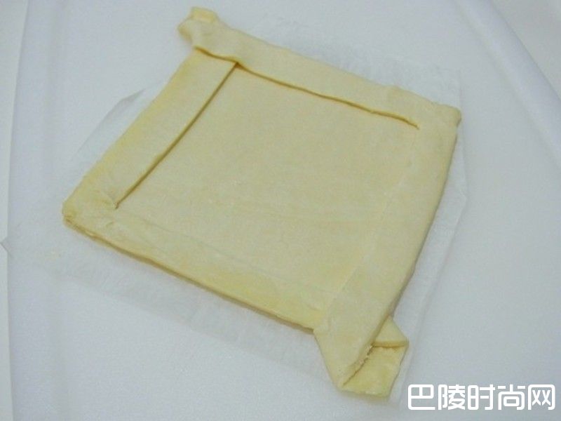1冷冻派皮如图切开、但保留一个对角不切断(红圈处)。