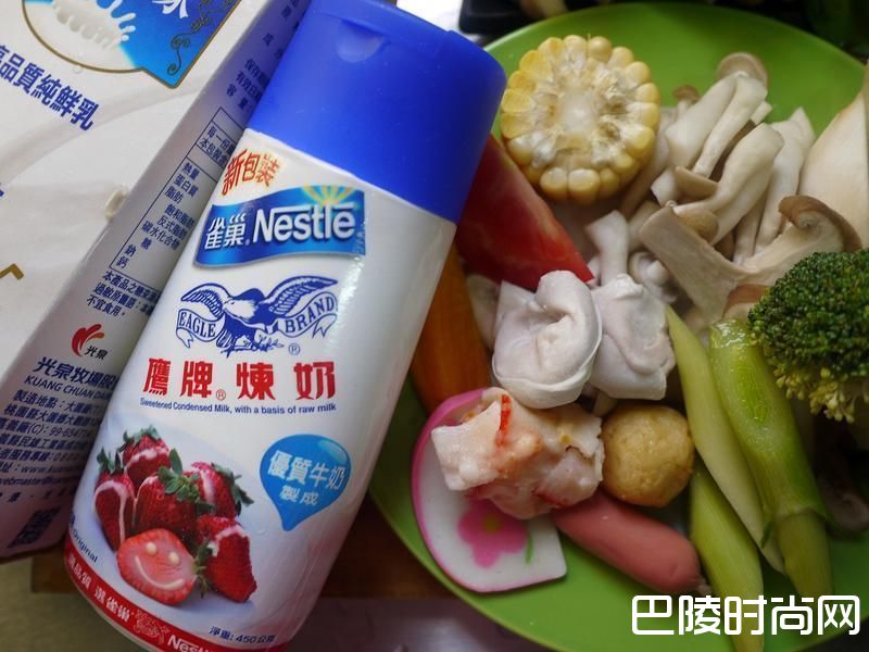 2牛奶锅的汤头比例为~高汤1:牛奶2:炼奶:1大匙(或依个人喜好)