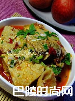 鲢鱼炖豆腐鲢鱼一条(约4斤),盐水卤豆腐2斤,葱姜蒜,八角