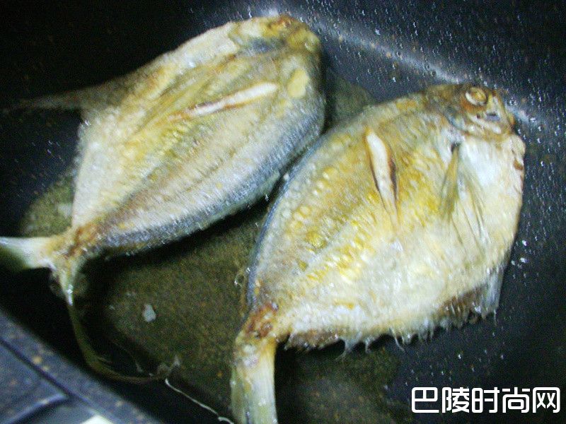 2锅里放油3大匙ˊ用半煎炸方式将肉鲳鱼先以大火让其定型ˊ再改以中小火煎至两面金黄ˊ(一面约3分钟)然后先盛起备用