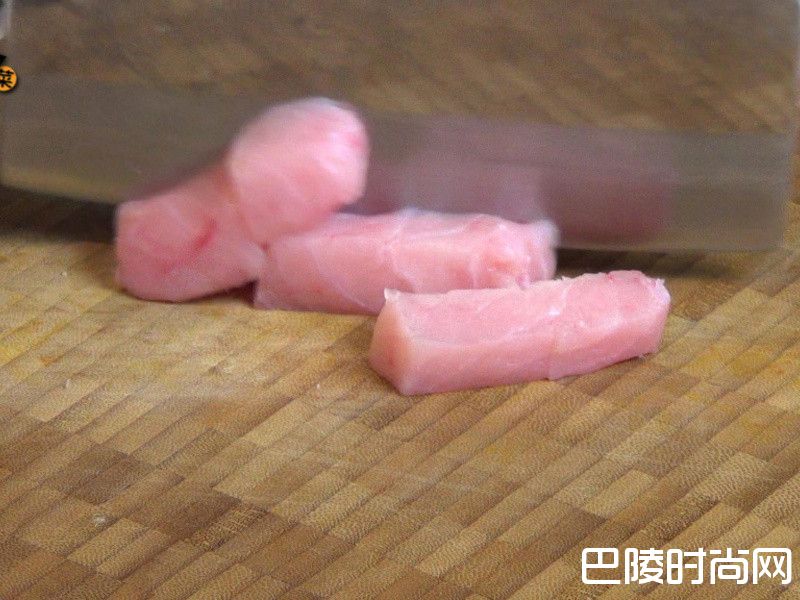1将鲨鱼肉切块后用米酒(1茶匙)、太白粉(1茶匙)醃渍5分钟。芹菜切段、蒜白斜刀切段、蒜尾切段。