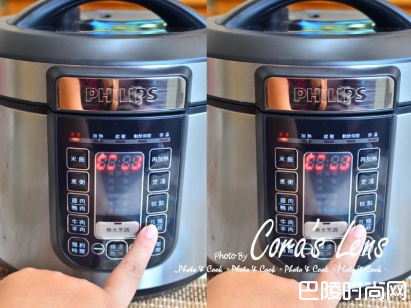 5盖上上盖后,按上面板的[豆类蹄筋]键,在保压计算后(这道保压计算时间会比较长),之后面板出现30:00数字。开始炖汤。比起一般传统的锅具来熬鸡汤,来的[省时][省电][省事]。