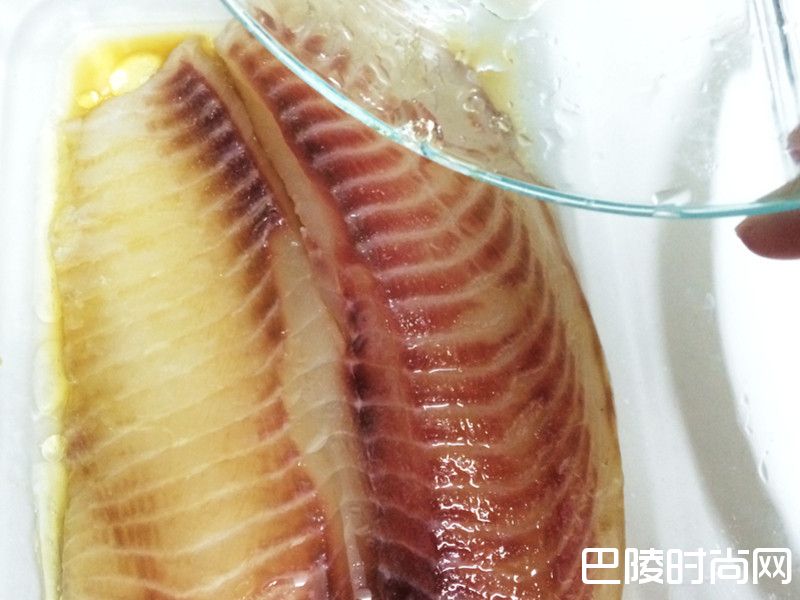 2把米酒、酱油、麻油加入后,用手帮鱼儿捏捏按摩一下