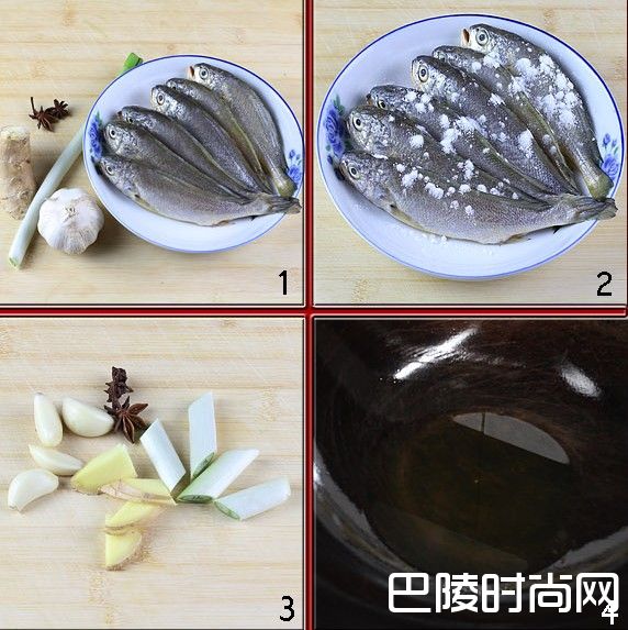 做法1.将黄花鱼洗净,盛入大碗中,放入精盐、鸡精、料酒、葱段、姜片和花椒粒,腌制2小时。