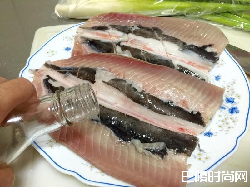 虱目鱼肚洗净,由鱼肚中央划开而不切断
