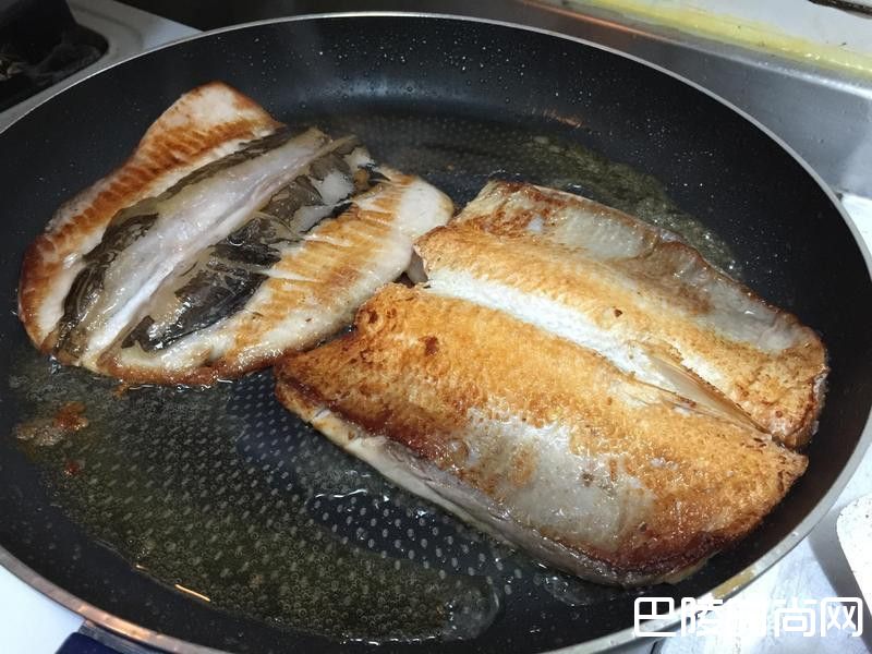 5鱼肚内面先小火煎,约4分钟