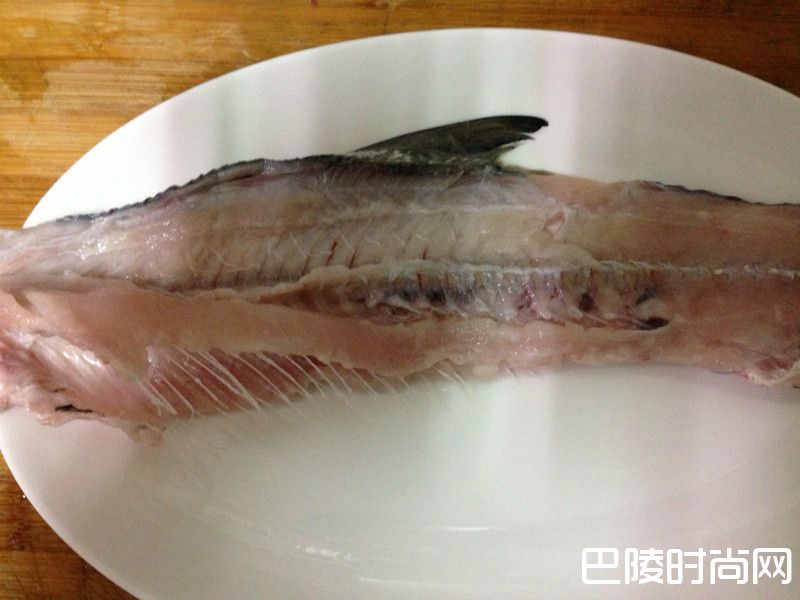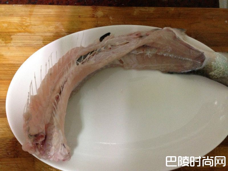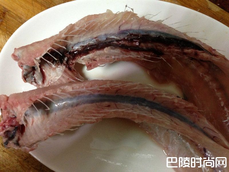 3虱目鱼骨旁边有一条黑色的(腹部图),用刀子划开用器具牙刷边洗边刷清理干净