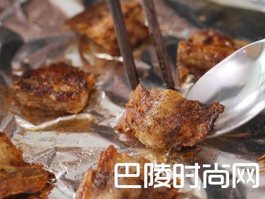 6、锡纸铺入烤盘,将鱼骨肉放入,酱汁均匀覆盖鱼骨;