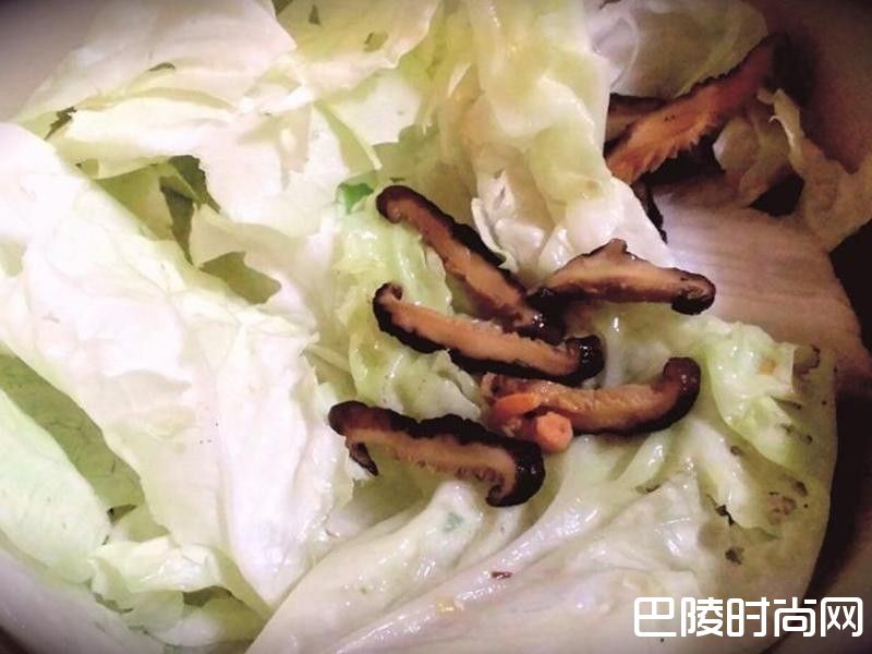 1香菇泡软切丝。白菜用手剥成块状备用。