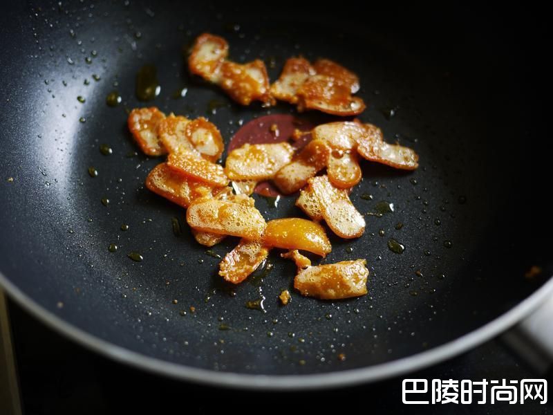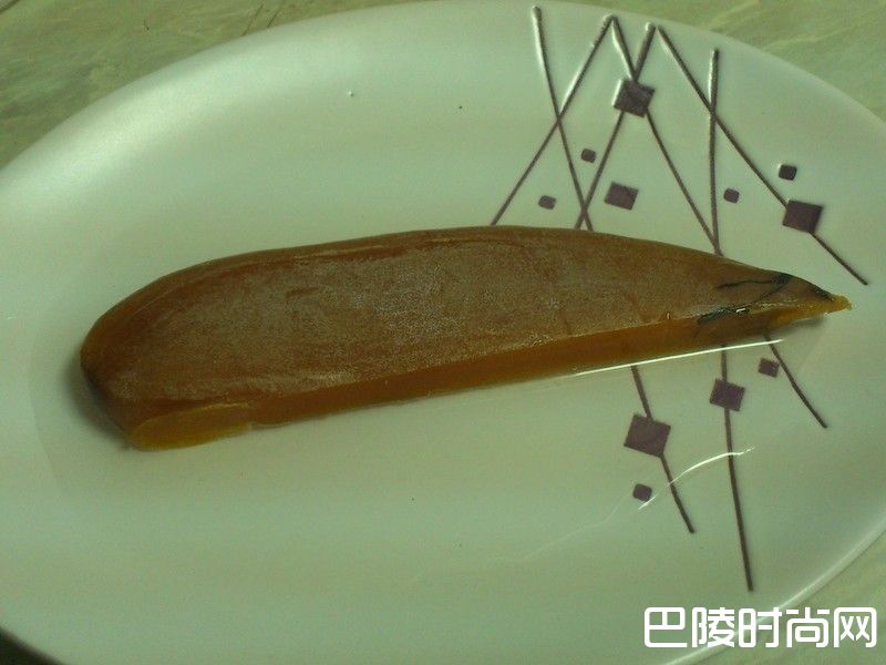 3乌鱼子不要煎到表面干掉,煎的过程若中间火太大,可以稍微往旁边移动一下。米酒收干后,取出切薄片,佐苹果、蒜苗片食用。