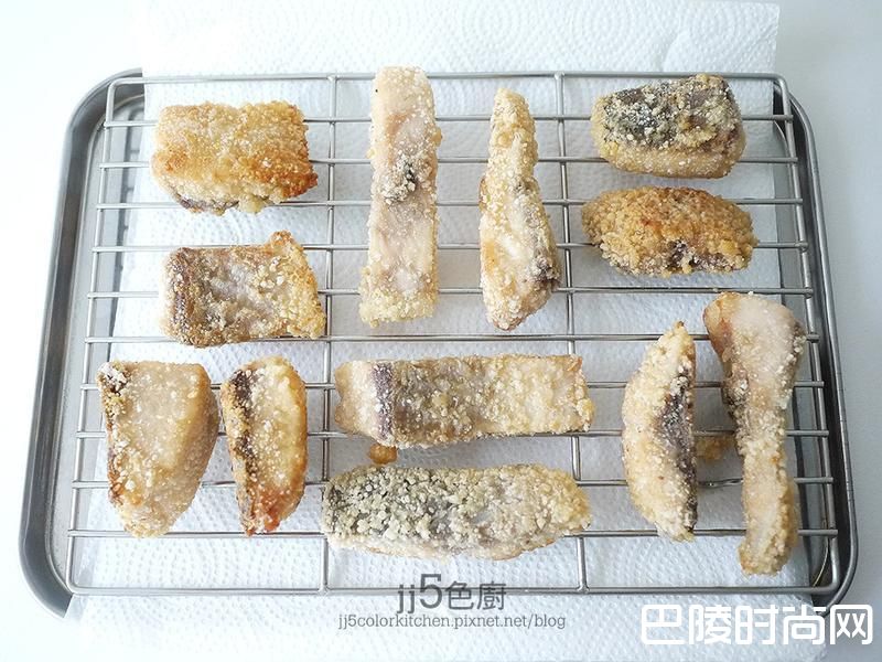 5炸好的鱼块沥干油。