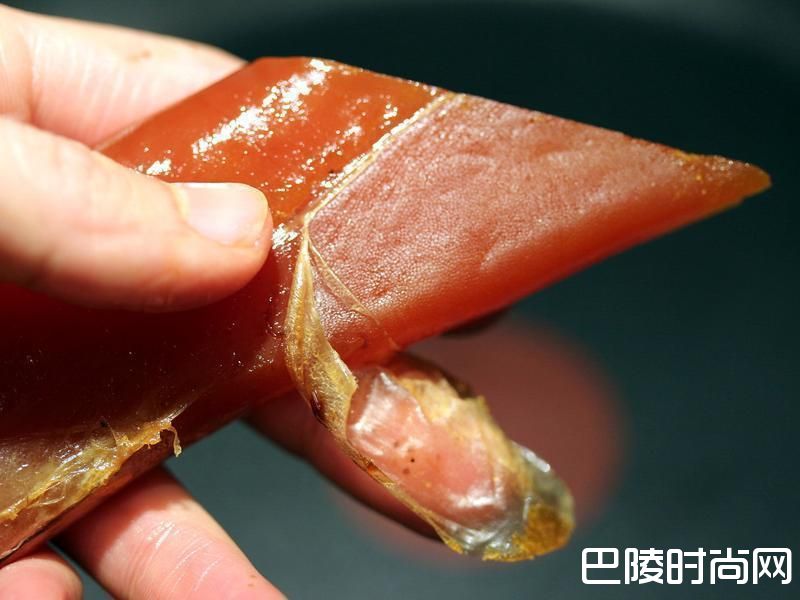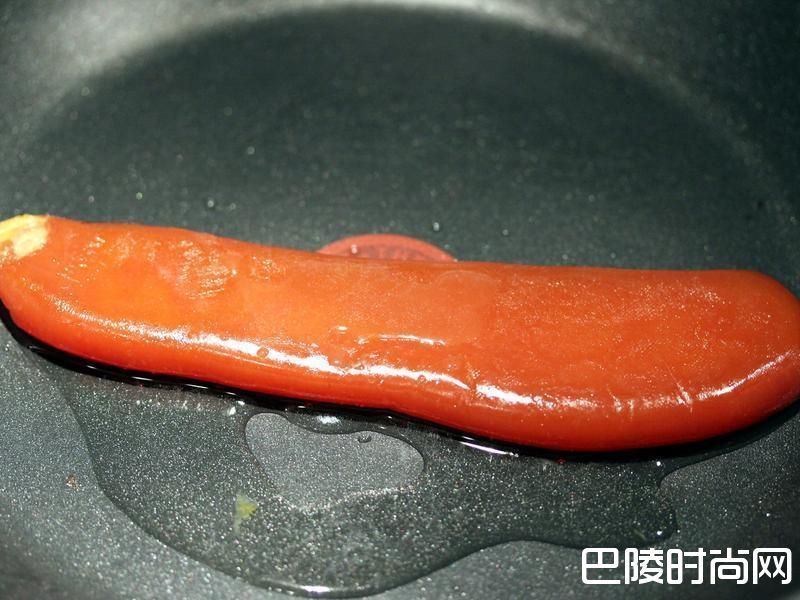 1乌鱼子与1大匙米酒一起放入锅中,小火煎至酒精挥发即可起锅(中途记得翻面)