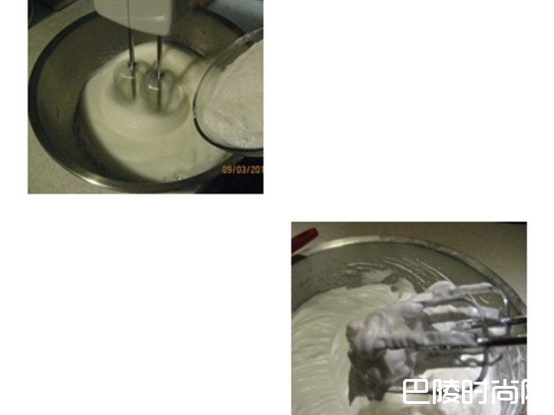 二蛋白先打发再放糖分3次加入打至硬性发泡。
