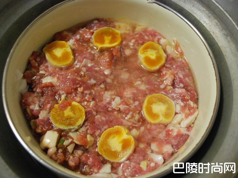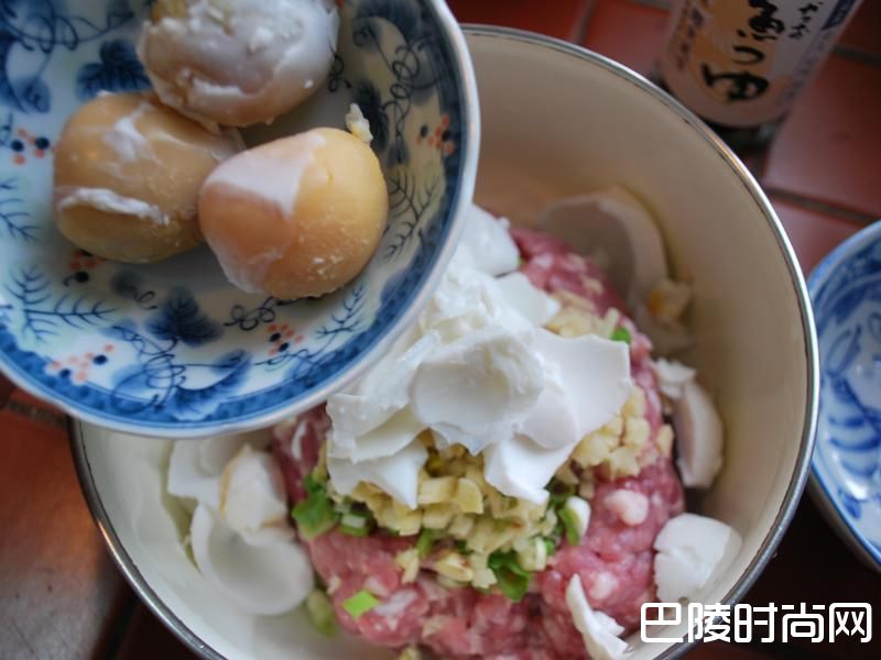 3将咸蛋的蛋黄与蛋白部分分开。蛋白先放入猪绞肉碗中。 蛋黄放著备用。