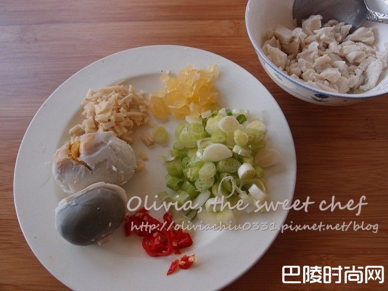 1葱、姜、蒜和辣椒切碎备用,咸蛋去壳,蛋白蛋黄分开。
