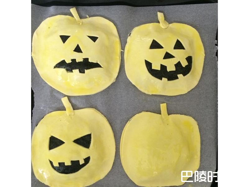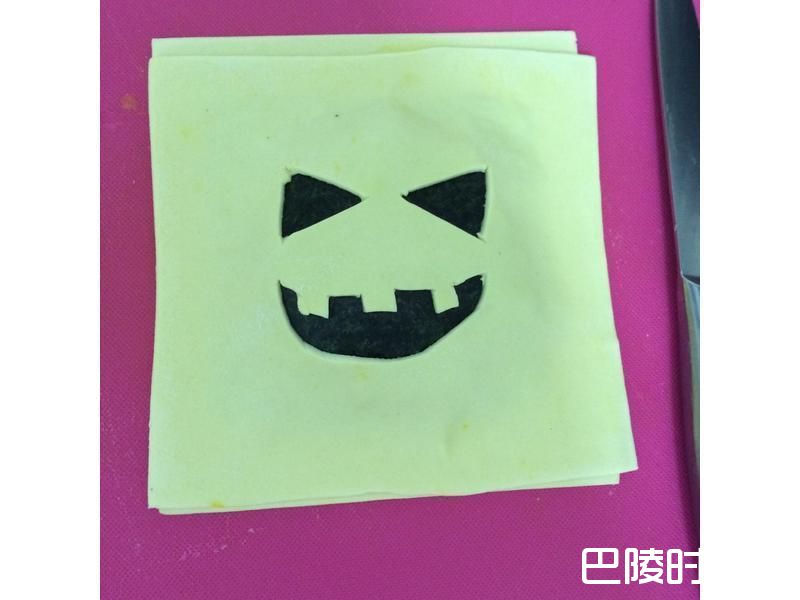 10也可以将上层的派皮先切割出五官,再放在海苔上