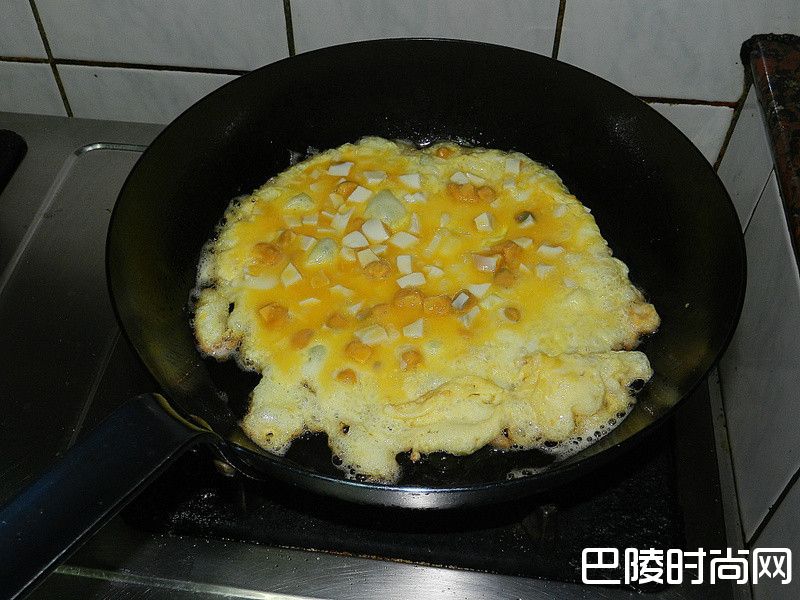 1鸭蛋切丁与蛋、盐混匀