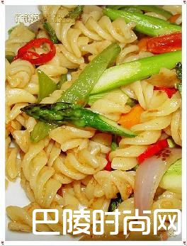 6.色彩缤纷,营养健康的什锦蔬菜炒螺丝粉就做好了。