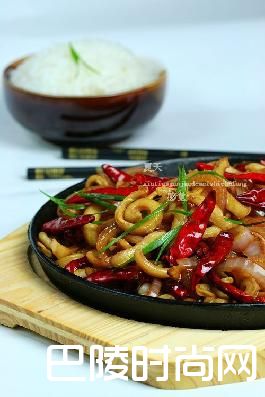 铁板鱿鱼鲜鱿鱼一条,洋葱一个,干辣椒一小把,姜两片,葱一段,调味料:盐,生抽,酱油