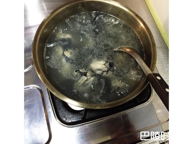 2乌骨鸡热水川烫过洗净,将干香菇泡水(香菇水留着)