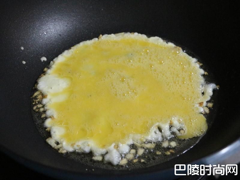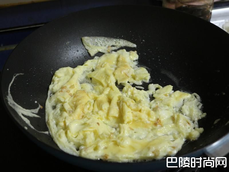 3油热了后将蛋汁下锅.
