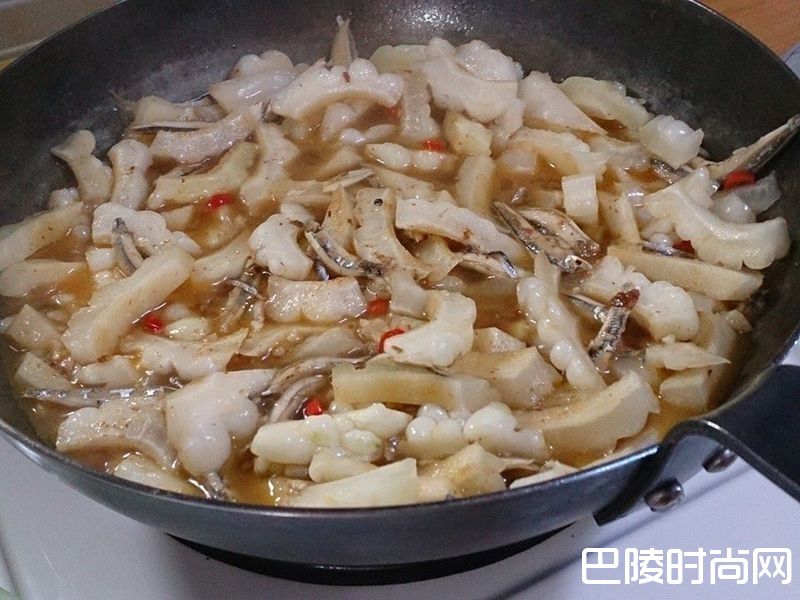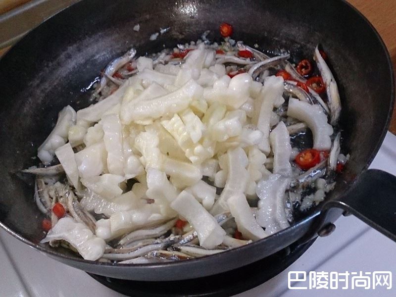 4放入苦瓜拌炒一下 加米酒
