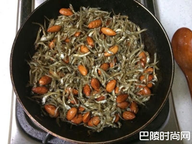 5接着放入杏仁继续翻炒