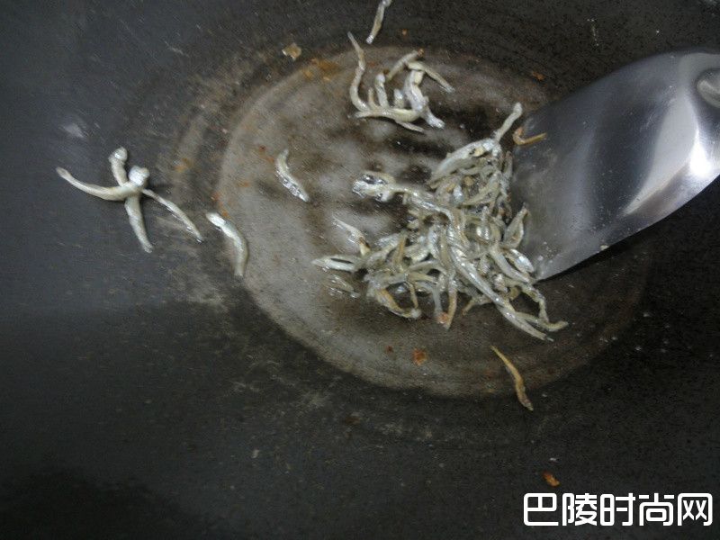 1步骤1..锅热油入小鱼干炒香