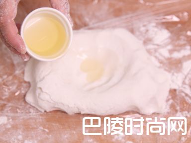 2将热水加进搅拌碗内,加入糯米粉拌匀