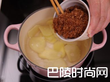 6在锅内煮沸大约500毫升水,加入姜片及黑糖煮大约10分钟直至糖完全溶解