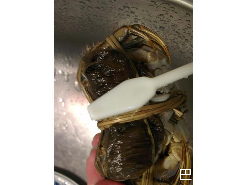 2将大闸蟹鱼水龙头底下,用牙刷洗蟹身及蟹前的绒毛