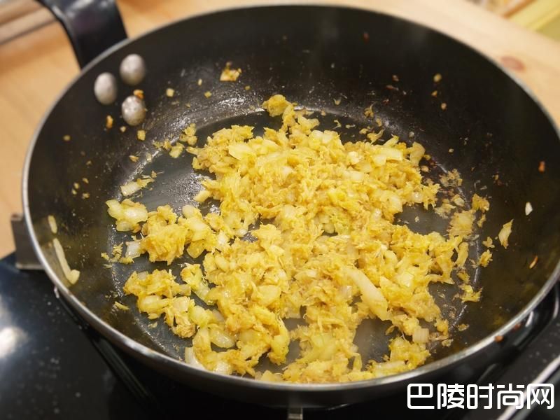 3步骤3: 重新热锅并放入1/2匙橄榄油,加入姜末与洋葱炒至焦黄色,接着加入蟹肉和米酒拌炒约5分钟,调入盐、1小匙黑胡椒粉取出备用,再次热锅,倒入1/2匙橄榄油并放进吐司慢煎至金黄酥脆即可取出装盘,取另 一盘铺上莴苣及炒好的备料,撒上巴西里后美味上桌。