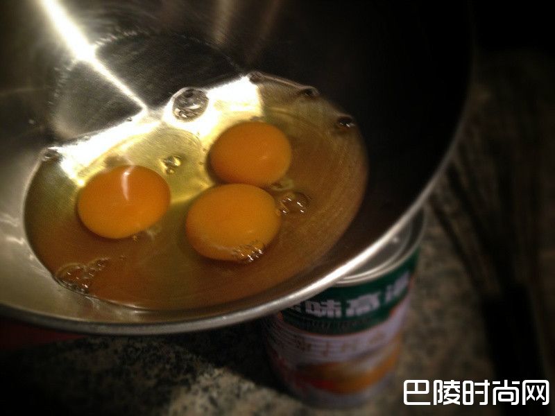 1将鸡蛋打匀后,加入一罐高汤再充分搅拌。捞去表面泡沫,静置备用。