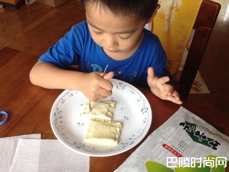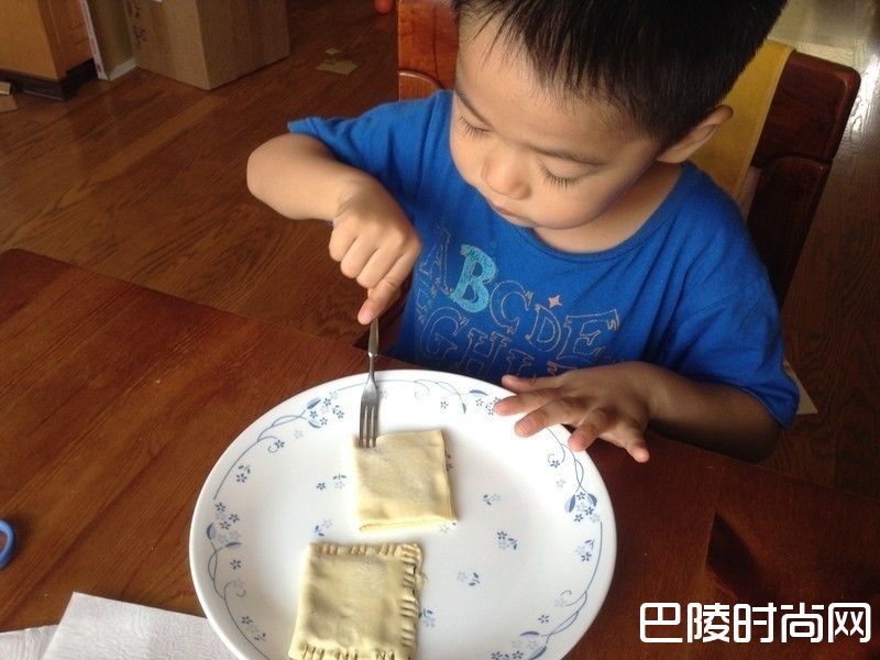 7在起酥片的上方,用叉子的尖端戳几个洞。